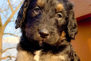 These loving standard bernedoodle puppies are a cross between a bernese mountain dog and a standard poodle.